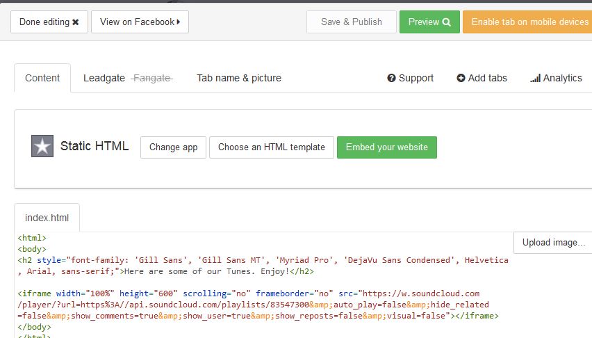 Now we are going to use the Thunderpenny Static HTML to create a new Music tab on your Facebook page - and then paste that Soundcloud code into it. You can use ThunderPenny to create other pages too.